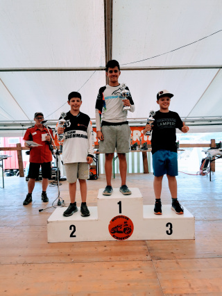 Nachdem wir am Samstagabend in Walde (AG) ankamen, ging ich gleich zur Strecken Besichtigung, um mir bereits erste Eindrücke zu verschaffen. Beim Zeittraining des Backyard Racing U16 Cup am Sonntagmorgen fand ich gleich einen guten Rhythmus. Somit konnte ich gleich gute Rundenzeiten fahren. Eine davon war so gut das es zur Bestzeit reichte und ich so als Schnellster das Training beenden konnte. Nach dem perfekten Training begab ich mich zuversichtlich an den Startbalken. Der Start verlief gut und so konnte ich als zweiter um die erste Kurve fahren. Ich versuchte von Anfang an Druck auf den Vordermann auszuüben und stetig anzugreifen. Nach langem Kampf und einigen Angriffen, gelang es mir kurz vor Schluss Vorbei zu kommen. ich konnte die Führung verteidigen und bis zum Ziel halten. Somit holte ich mir den Laufsieg. Ich ging mit viel Selbstvertrauen an den Start zum zweiten Rennlauf. Der Start verlief wieder ganz gut und ich kam als dritter um die erste Kurve. Ich verfolgte die gleiche Strategie und versuchte gleich anzugreifen. Dies gelang mir auch sehr gut, so dass ich in der dritten Runde schon am Führenden dran war. In Runde sieben riskierte ich dann zu viel und überschlug mich, samt Bike, nach vorne über. Nach dem Sturz brauchte ich einige Zeit, um mich wieder zu orientieren. Dadurch verlor ich einige Plätze. Jedoch konnte ich den zweiten Rennlauf noch als Siebter beenden. Durch den Sieg im ersten Lauf schaute beim Tagesklassement tatsächlich noch der dritte Platz raus. Dies verhalf mir ein wenig, über den Ärger wegen dem Sturz, hinweg zukommen. Jetzt heisst es Blick nach vorne, da bereits nächstes Wochenende das nächste Rennen im Zürcher Weinland ansteht.