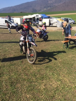 Zum offiziellen Saisonauftakt reisten wir ins bernische Moutier. Am Samstag war der Meisterschaftslauf der MXRS-Moto-Cross-Race-Serie und am Sonntag der Lauf der FMS Meisterschaft. Ich konnte mich gleich schon bei den ersten Runden gut auf die Strecke einstellen. Somit fuhr ich von Anfang an gute Rundenzeiten. Am Ende des Zeittrainings platzierte ich mich auf der dritten Position von 20 Fahrern. Gut eingestellt und top motiviert auf den ersten Lauf ging ich an den Startbalken. Der Start verlief perfekt und ich konnte mir den „Holeshot“ sichern. Jedoch viel ich in den ersten Runden zwei Plätze zurück und fuhr so als dritter übers Ziel. Beim zweiten Rennlauf verlief der Start mittelmässig. So startete ich das Rennen aus dem Mittelfeld. Ich kämpfte mich aber relativ schnell bis auf die vierte Position nach vorne. Bei harten aber fairen Kämpfen um Platz drei, ging ich leider kurz zu Boden. Diesen Abstand schaffte ich leider nicht mehr wieder gut zu machen in den letzeten 2 Runden. Somit beendete ich den zweiten Rennlauf auf Platz vier. Im Tagesklassement wurde ich punktgleich mit dem Drittplatzierten, auf Grund des schlechteren zweiten Laufes, als vierter platziert.